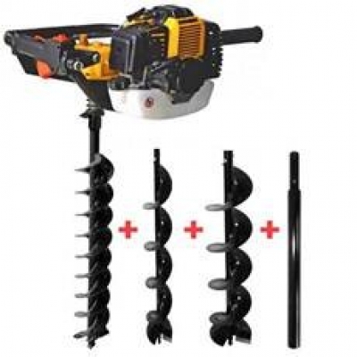 Lumag EB520 grondboormachine inclusief boren van 10, 15 en 20 cm en een verlengstuk van 40 cm. De grondboormachine heeft een 2takt benzine motor met een vermogen van 3pk. De boorlengte is 75cm.